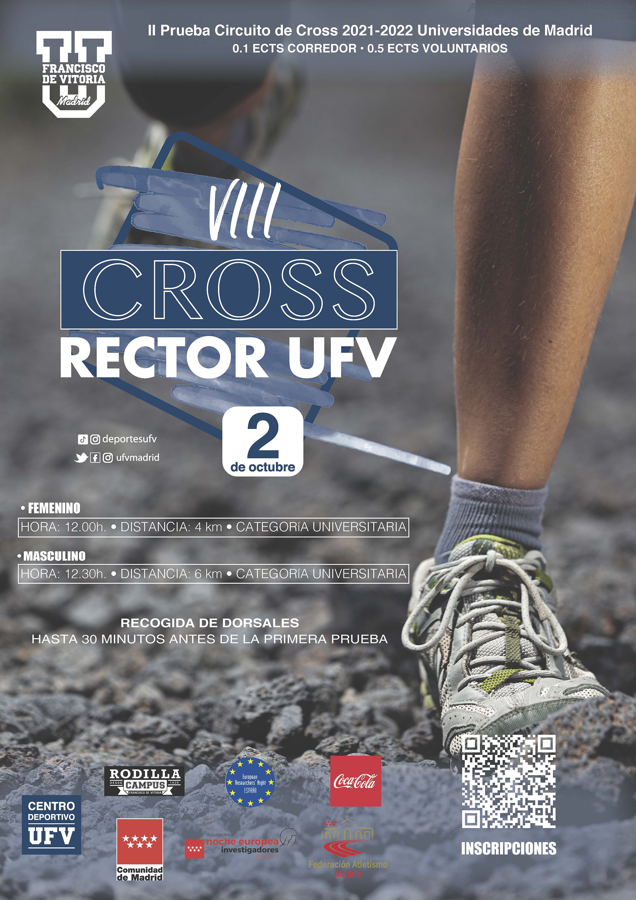 El sábado 2 de octubre a las 12:00 horas la Universidad Francisco de Vitoria organizará la segunda prueba del Circuito Universitario de Cross de Madrid. Las inscripciones se podrán realizar a través de la plataforma Rock The Sport hasta el jueves 30 de septiembre a las 14:00 horas. En este evento solo podrán participar miembros de la comunidad universitaria de Madrid.
