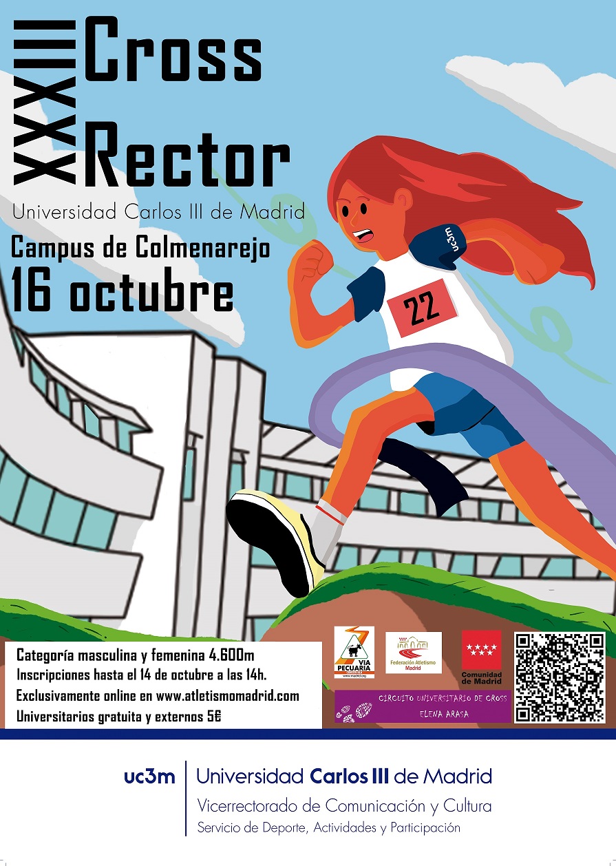 El sábado 16 de octubre a las 12:00 horas la Universidad Carlos III de Madrid organizará en su campus de Colmenarejo la tercera prueba del Circuito Universitario de Cross de Madrid. Las inscripciones se podrán realizar a través de la plataforma Rock The Sport hasta el jueves 14 de octubre a las 14:00 horas. En este evento también podrán participar atletas populares (coste de 5 €).